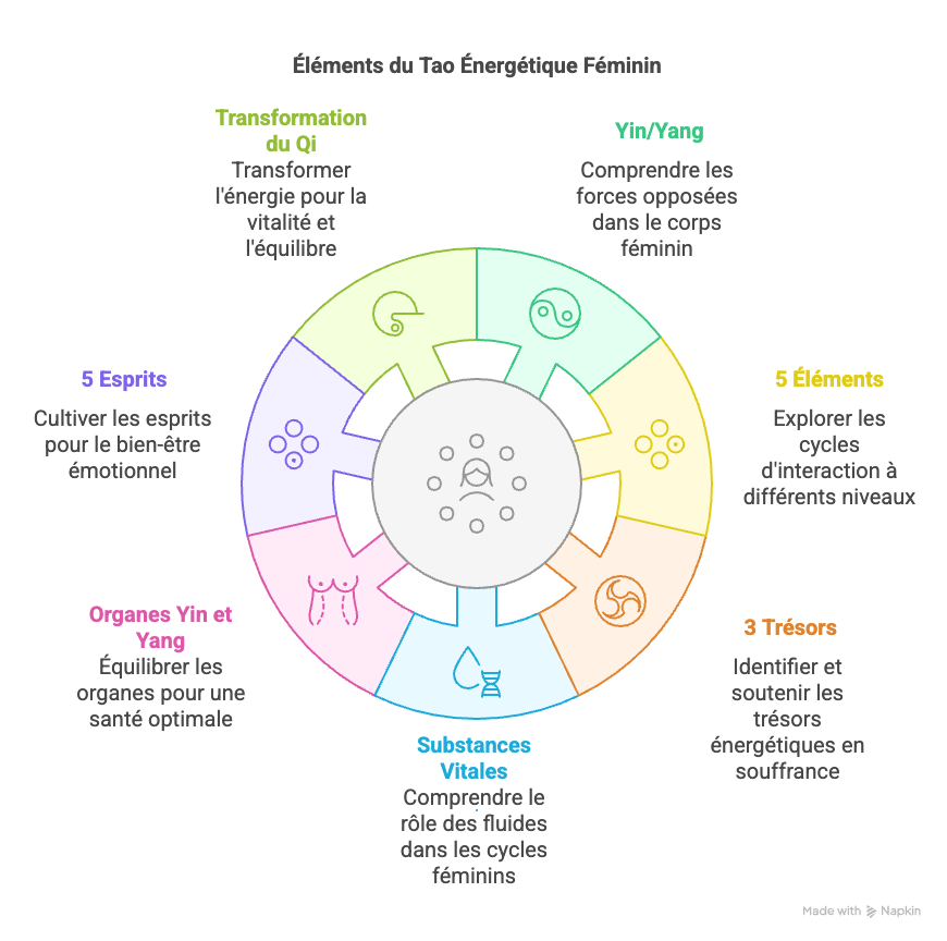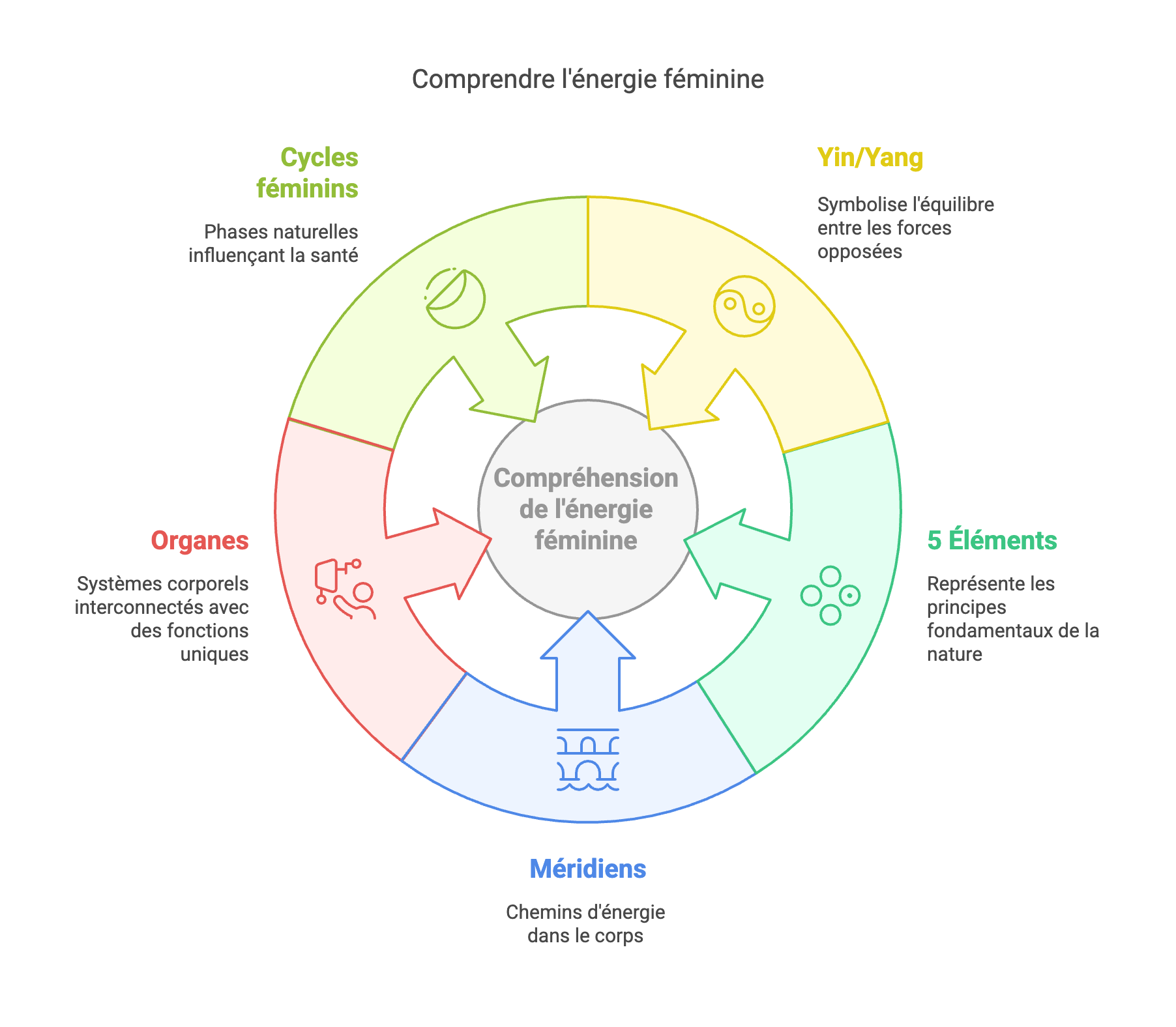 🔹 On explore en détail un concept fondamental du Tao énergétique féminin : Yin/Yang, 5 éléments, méridiens, cycles féminins…